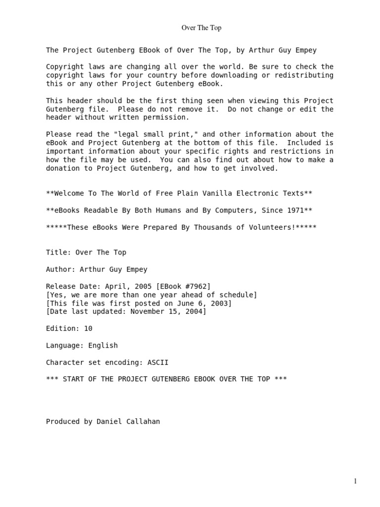 Over The Top By Empey Arthur Guy 1883 1963 Pdf Project Gutenberg Trench Warfare